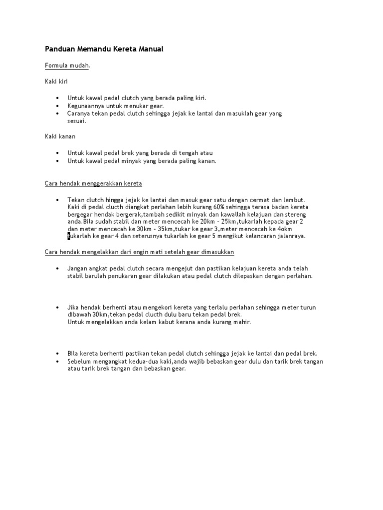 Panduan Memandu Kereta Manual Pdf